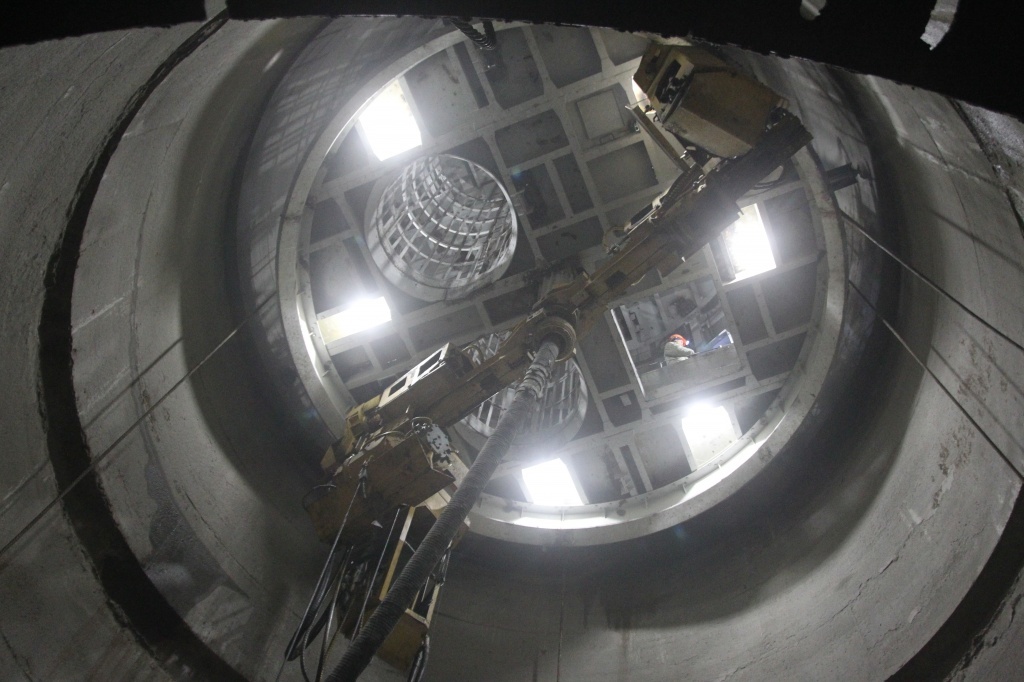 - Применяемые технологии: Проходка ведется буровзрывным способом с возведением бетонной крепи. Для обеспечения гидроизоляции и долговечности в стволе №1 начат монтаж чугунной тюбинговой колонны. Критически важным элементом является проведение работ по искусственному замораживанию водоносных горизонтов, что полностью исключило водопритоки.